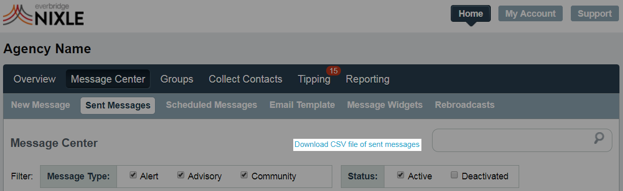 To view the delivery statistics for all of an agency's sent messages, a CSV file must be downloaded. Follow these steps to do so: